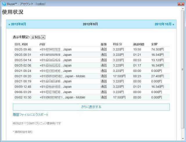 先日コンビニでSkypeプリペイド(¥500)を購入しアカウントにチャージし、一ヶ月使用してみました。 先月の使用料金はこのようになりました。 現在利用のスマートフォンの通話料金は¥42/分 Skype通話の場合は固定電…