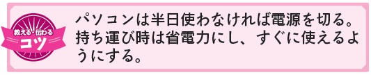 ■パソコンを休ませる方法 パソコンを使わない場合は、電源を切る(シャットダウン)他に、スリープや休止状態といった方法がありました(1-22節参照)。 スリープや休止状態は、パソコンが前回の作業内容を覚えていて早く起動でき…