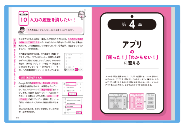 本書で、スマホの疑問の解決から安心して使う方法を、図や漫画で理解できます