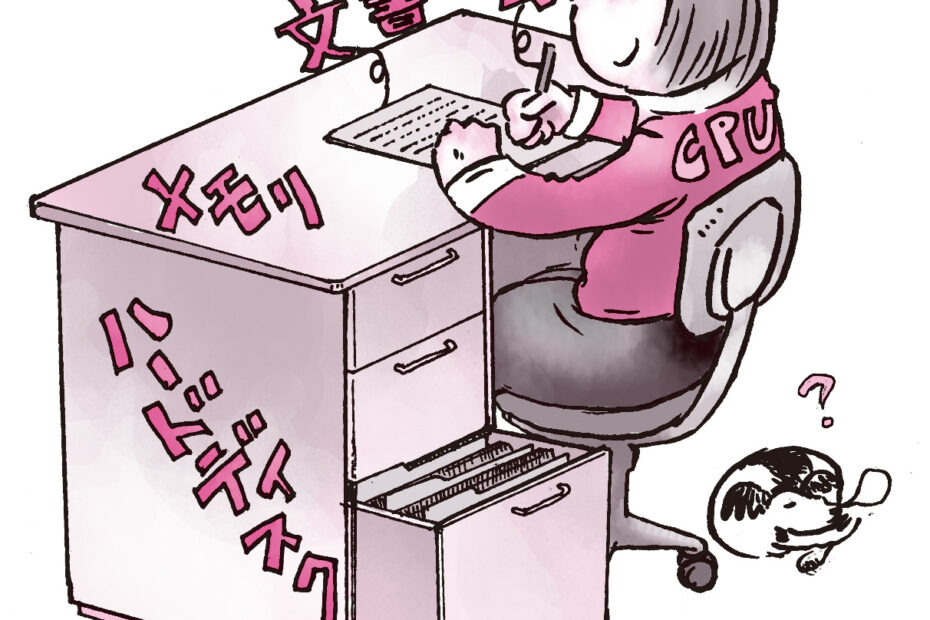 ■ハードディスクとメモリのちがい ハードディスクもメモリも記憶装置です。 パソコンの電源を切ってもハードディスクの中のデータは残るのに対し、メモリの中のデータは消えてしまうという特長があります。 パソコンでの作業は一時的… 続きを読む »ハードディスクとメモリのちがいは何?